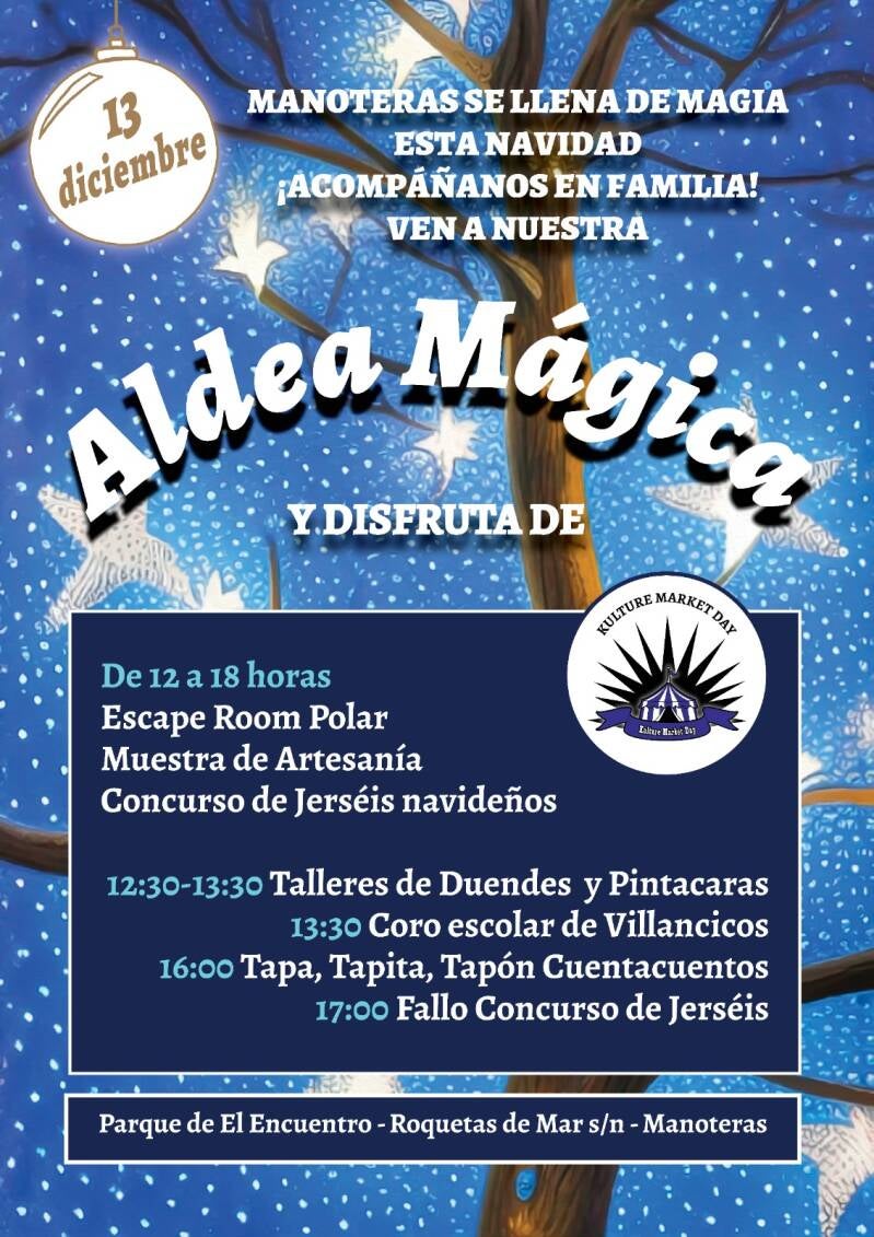 Ven a disfrutar en familia, tendremos talleres de duendes, pintacaras, escape room, concurso de jerséis navideños y muestra de artesanía.